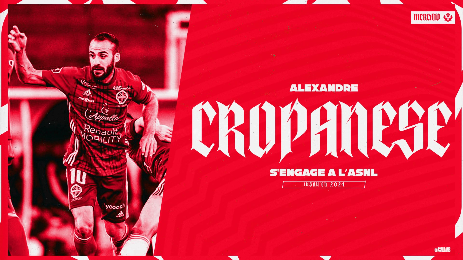 24 juin : Nancy enregistre sa 3ème recrue, le milieu offensif Alexandre Cropanese (Bastia/Borgo) qui signe pour 2 ans.