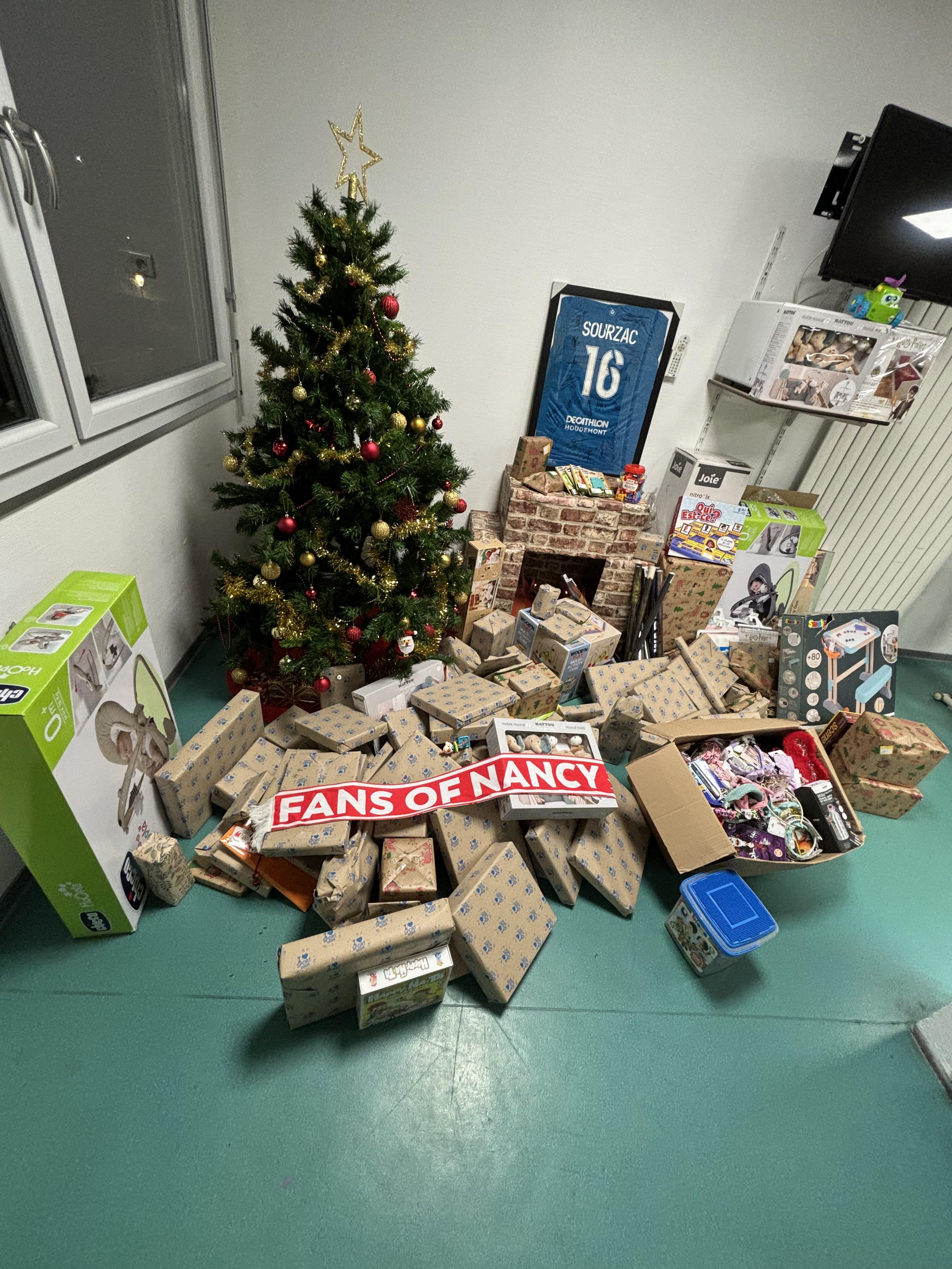 Au total, grâce à votre générosité, c'est plus d'une centaine de cadeaux qui ont pu réchauffer le cœur des enfants des services HET (Hôpital en Tension) et UPUP 1 et 2 (Unité Post Urgence Polyvalence Pédiatrique). Un grand merci à Justine Bernard, infirmière puéricultrice, qui nous a permis de faire le lien avec l'hôpital. Nous tenions également tout particulièrement à remercier les Socios, le Saturday FC et l'AFC pour leur aide et leur implication lors de la collecte. Merci également à Nabil El Yaagoubi (DGA) qui a fait le lien entre l'ASNL et nous pour cet événement. Nous avons aussi, évidemment, une pensée pour Martin Sourzac, qui a encore une fois fait preuve d'une solidarité sans faille en offrant son maillot qu'il a pris soin de faire dédicacer par l'ensemble de l'effectif. Nous l'avons mis sous cadre et offert au service UPUP. Merci Martin !