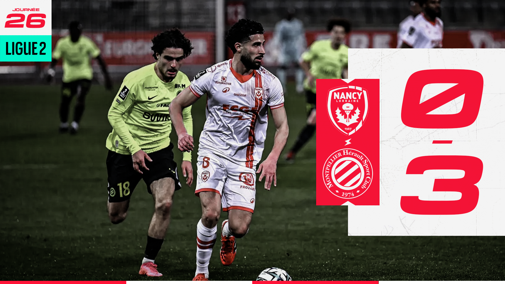 C’est reparti ! Pablo Correa n’a visiblement pas été satisfait par la prestation de ses joueurs et le fait savoir : retour du système à quatre défenseurs avec les entrées de Fdaouch et Jimmy pour enflammer les ailes. Dès lors, l’ASNL montre un bien meilleur visage en remettant le pied sur le ballon. L’inarrêtable Alexandre Mendy, taillé pour jouer en Ligue 1, émet un avertissement à l’encontre des Nancéiens sur un centre proche d’être transformé en but (60’). Alerte traumatisme. Saint-Ruf, dans un geste maladroit plus que intentionnel, emporte les deux jambes de Pays avec son tacle. L’arbitre sort immédiatement le carton rouge (63’)... Quelques minutes plus tard, l’espoir des Nancéiens renaît à la suite d’une grossière faute d’Emerson Junior sur Bouabdeli, lui aussi exclu (69’). Cette seconde période plus hachée profitera finalement à Montpellier. Alexandre Mendy (on va en faire des cauchemars) est servi seul dans la surface. Son tir contré revient dans les pieds de Molebe qui n’a plus qu’à frapper dans une cage presque vide (0-2 ; 75’). La frappe d’Orakpo qui trouve le poteau (78’) ne suffira pas pour sonner la révolte. Montpellier enfonce le clou après un sublime jeu à trois dans lequel Mendy n’a plus qu’à pousser le ballon au fond des filets (81’ ; 0-3).