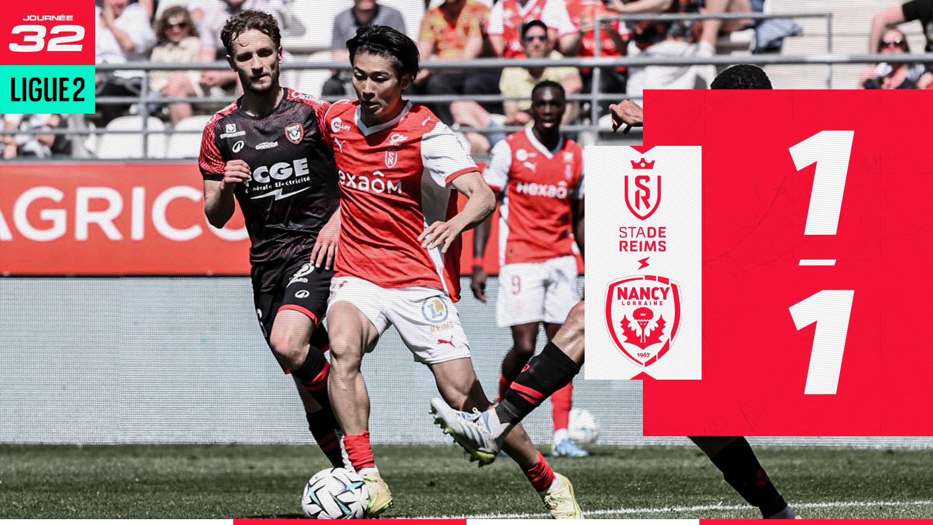 C’est reparti ! Les Nancéiens, comme les Rémois, ne produisent pas un grand match de football avec, il faut le dire, un bloc nancéien très compact. En pleine surface, Fernandez se rend coupable d’une grosse poussette, le stade exige un penalty, l’arbitre ne bronche pas (58’). Dans la foulée, Maouassa pourtant en manque de temps de jeu est pris de crampes et s’écroule au sol (60’). Comme si cela ne suffisait pas, Suljic qui n’était jusqu’ici pas du tout au niveau de la rencontre met son pied en opposition et en retard dans un duel au milieu de terrain. Déjà averti, le milieu nancéien récolte un second jaune, synonyme d’expulsion (65’). Contre toute attente, les Nancéiens se montrent plus dangereux en infériorité numérique. L’ASNL manque une contre-attaque à 3 contre 2, avant que Reims ne trouve le poteau sur une belle frappe à l’entrée de surface (77’). Dynamiteur officiel de l’ASNL, Fdaouch fait une course de 70 mètres sans être gêné par le moindre rémois. Une aubaine suivie d'une frappe légèrement déviée qui fait mouche et permet à Nancy de revenir dans le match (1-1 ; 85’). Reims ne parviendra pas à reprendre l’avantage, sa dernière action est annihilée par un tacle d’anti-jeu d’Evans, qui ne prend qu’un carton jaune (90 + 5’).